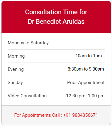 Family MedicineDr Benedict Aruldas10 AM - 1 PM, 6.30 - 9.30 PM